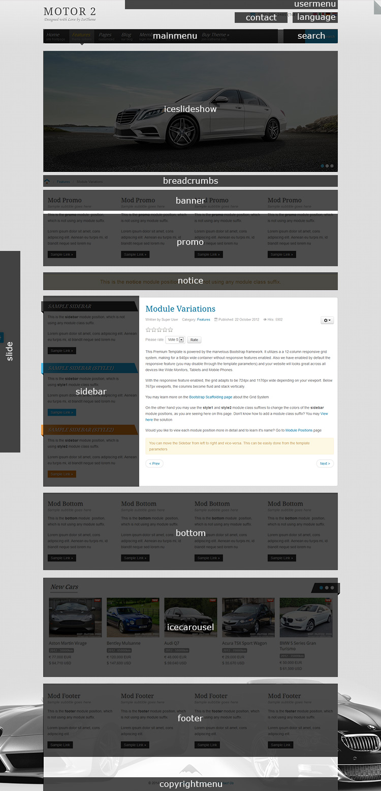 Learn the name of each module position from the template screenshot below. Additionally you may view the Module Variations page as well. Got any questions? Our Support team is ready to help you
