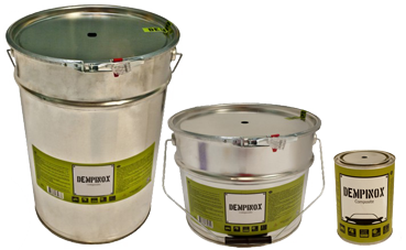 Композит демпінокс поставляється в герметичній металевій тарі об'ємом: 20 літрів, 10 літрів і 1 літр. Термін зберігання два роки. На обручі дві захисні пломби з логотипами компанії. Матеріал в упаковці готовий до нанесення.